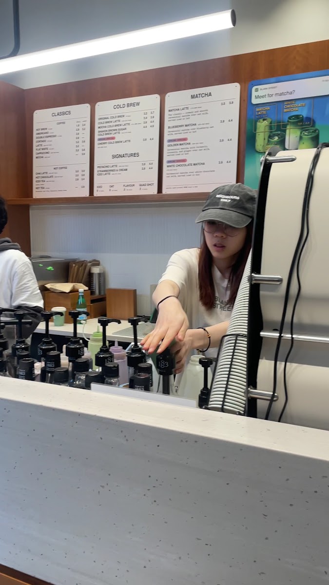 Great experience at this branch. I especially loved taby and sejal! They gave us amazing customer service and taby with her excellent latte art! Will deffo come back! I must add my commemorations for the lovely service and kindness. I love the cat and the flower addition to my hot choc' :D. PEACE N'LUV Steph n Milshh