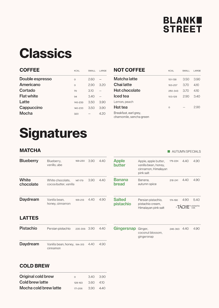 Blank Street Coffee - London Menu
